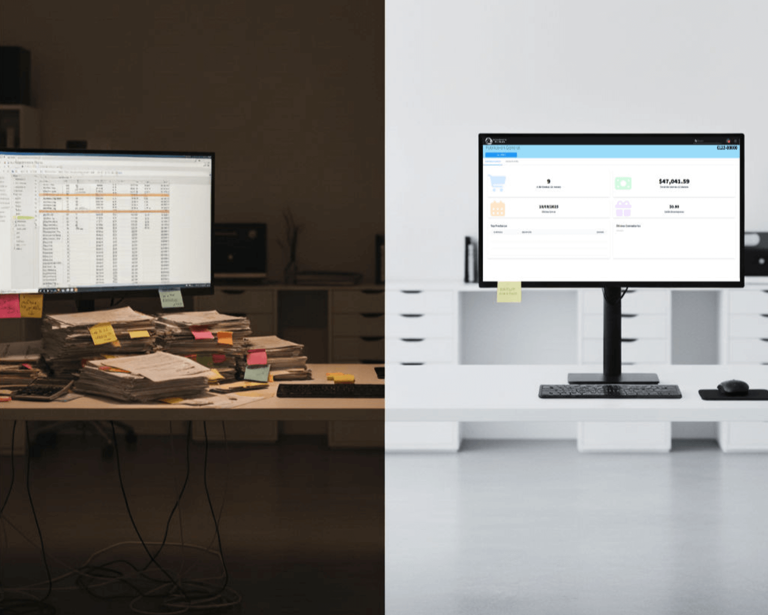 La Realidad: Compras hace pedidos basándose en un Excel que se actualiza "cuando se puede". Ventas sigue vendiendo stock que ya no existe. Almacén descubre "fantasmas" (productos que el sistema dice que existen, pero físicamente no están).